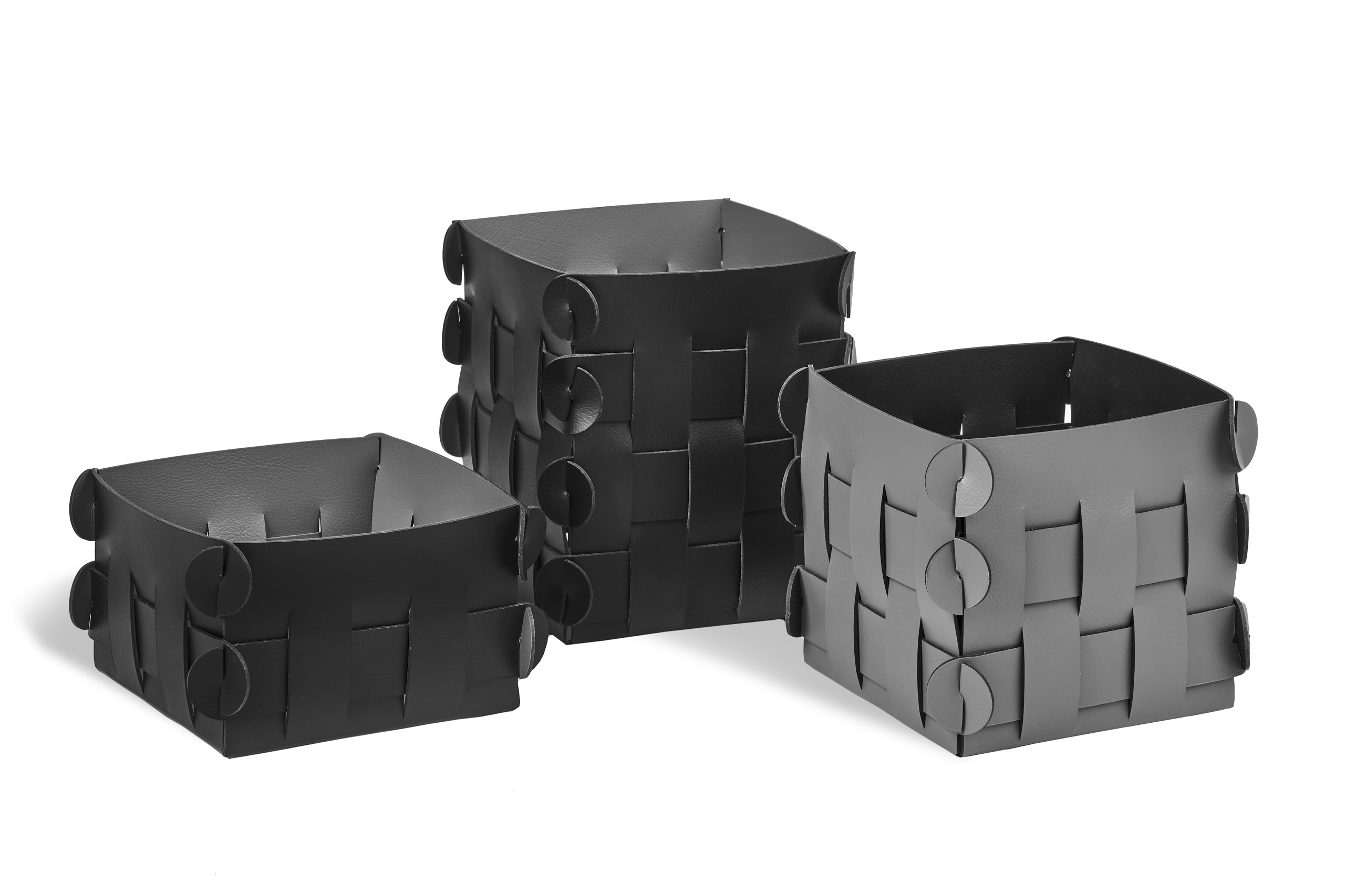 Three sizes of baskets serve multiple purposes, whether for storing small items, setting tables, or displaying flower pots.