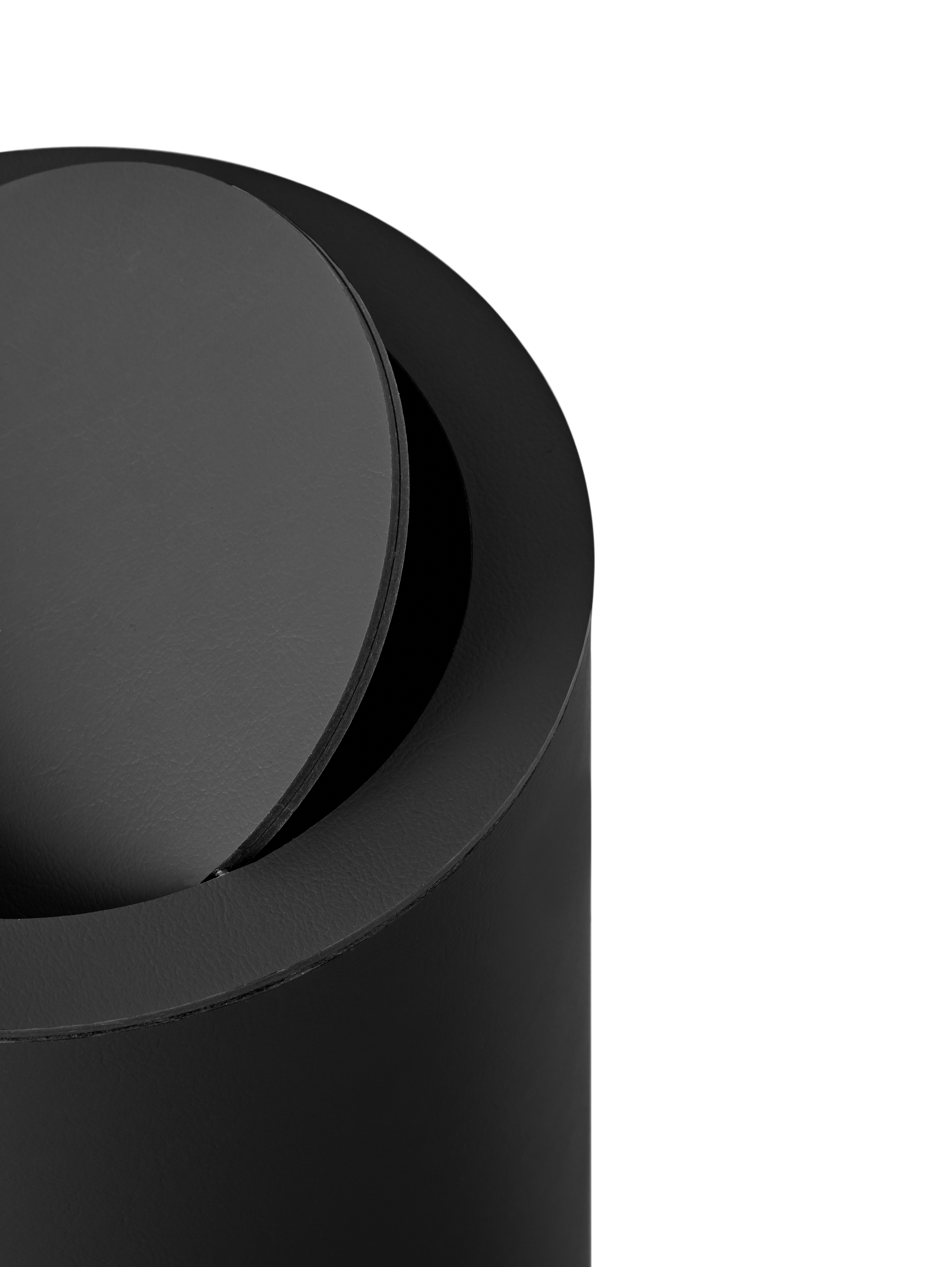 The waste basket with a swivel lid - perfect for a home office, living room, or bathroom. With its clean, non-weawing design. Easy to clean and effortlessly elegant.